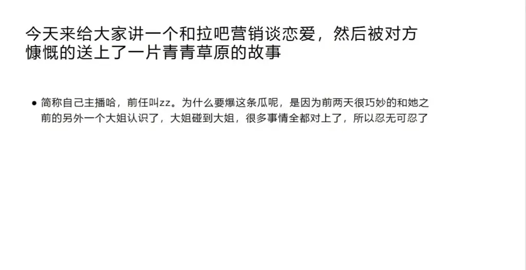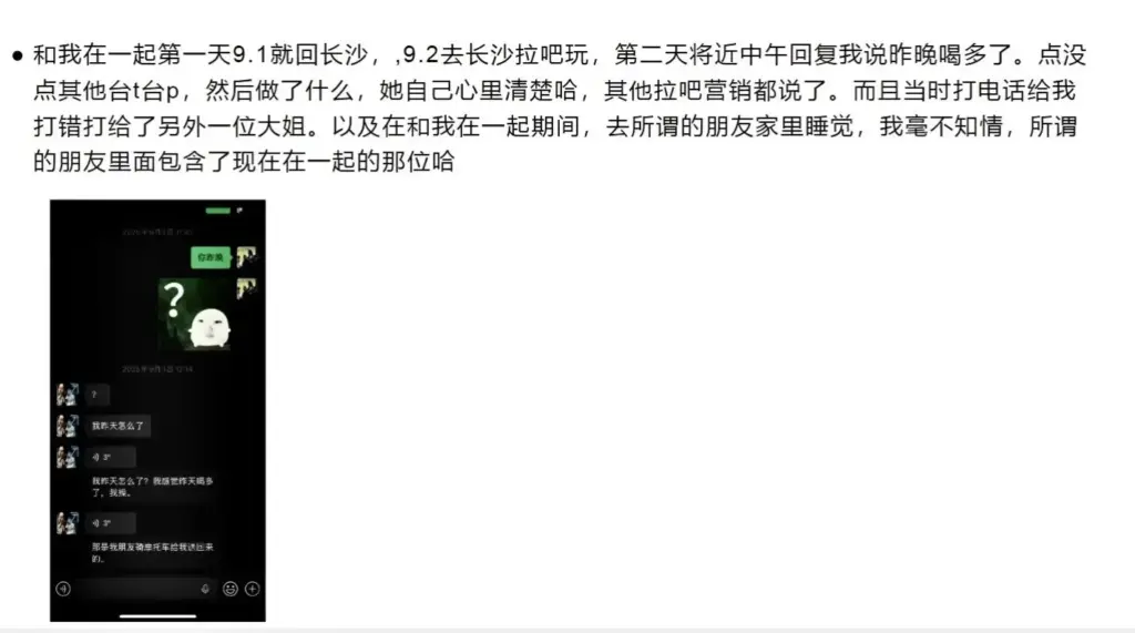 长沙乐派拉拉酒吧近日因女营销竹子zz引发热议。她被曝长期在圈内营造深情专一形象,实则同时周旋多人,一边哄年长女性为她买车买房,一边又在酒吧与他人暧昧。事件由博主爆料引出,随后牵出十几位受害者,甚至出现“苦主复仇群”。更夸张的是,事情败露后她还以假血浆割腕、跳楼威胁等方式闹剧收场。此事不仅打碎了不少人对拉拉圈“纯爱”的幻想,也暴露出她将感情当作牟利与博弈工具的做法。